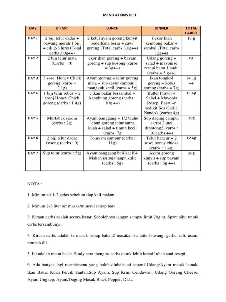 X Nak Gemuk Menu Seminggu Atkins Turun 45kg Seminggu In